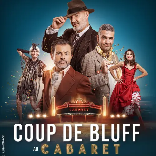 | 24.00€ à 40.00€Après de belles années de gloire, le cabaret des deux frères Claude (Jérôme Anthony) et Michaël (Nicolas Vitiello) est en faillite. Malgré l’aide de Celeste (Véronique Demonge), meneuse de revue à la retraite, ils peinent à redonner à l’établissement sa grandeur d’antan. Jusqu’au jour où Tonio (Frank Leboeuf), escroc recherché, décide par la force de s’y cacher pour réussir sa cavale. Quoi de mieux que ce cabaret miteux déserté par le public pour mener à bien sa planque ? Lorsque la police débarque (Christine Lemler), tout ce joli monde va tenter de jouer un rôle pour cacher les secrets de chacun. Mais aucun n’imaginera qu’entre jeux de rôles, coups de bluff et quiproquos, l’énorme vérité qui va éclater pourra enfin sauver le cabaret ! Coup de bluff au cabaret est une comédie hilarante qui se termine en apothéose par un vrai show cabaret mêlant chant, danse et féérie. Avec Jerome Anthony qui rejoint la troupe de Frank Leboeuf, Nicolas Vitiello, Christine Lemler, Veronique Demonge réunis pour la 5eme fois après les succès de Ma Belle Mère et Moi, Ma Belle mère et moi 9 mois après, l’Art n’a Coeur et Drôle de Campagne.